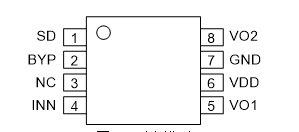 輸出功率:2W(典型值)@1% THD+N,4Ω負載